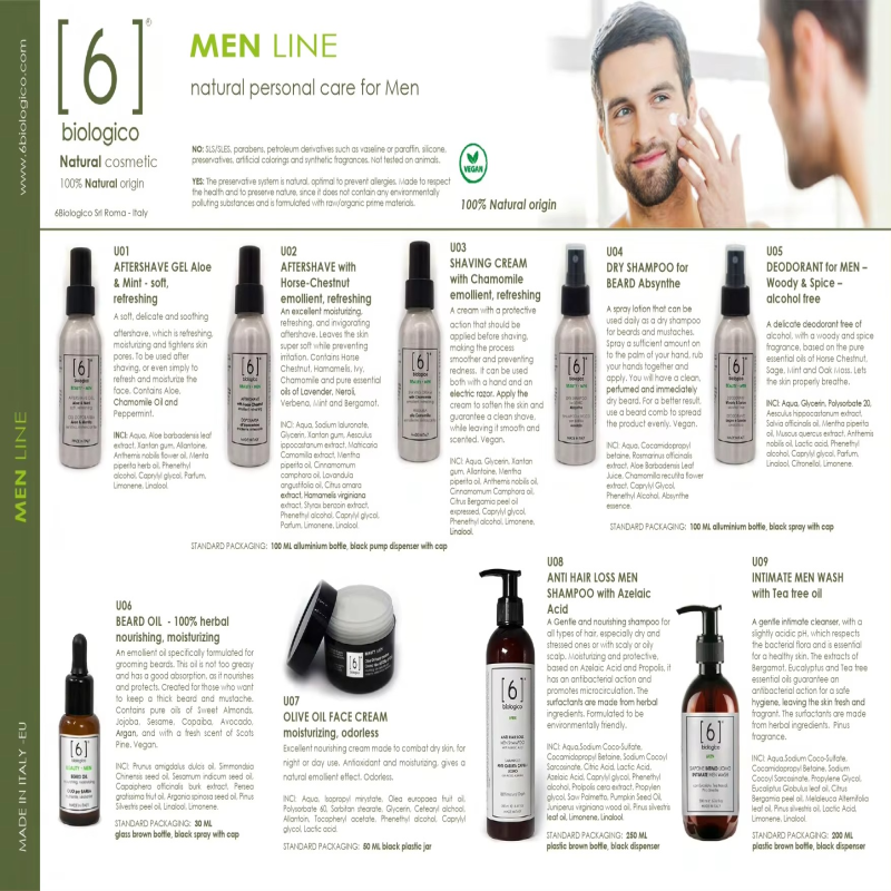 Luxury Cosmetic Creams and Lotions for Men - Full Line of Organic Products - Vegan - Made in Italy